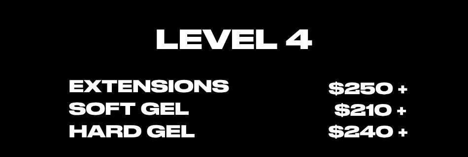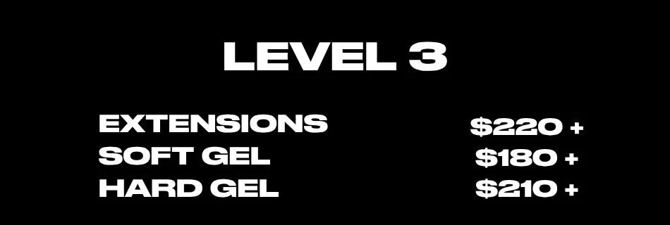 FOR CLIENTS WITH LONG NATURAL NAILS, AN ADDITIONAL FEE OF $30 IS APPLIED TO STRUCTURED GEL SERVICES. THIS IS DUE TO THE ADDITIONAL TIME AND PRODUCT REQUIRED.